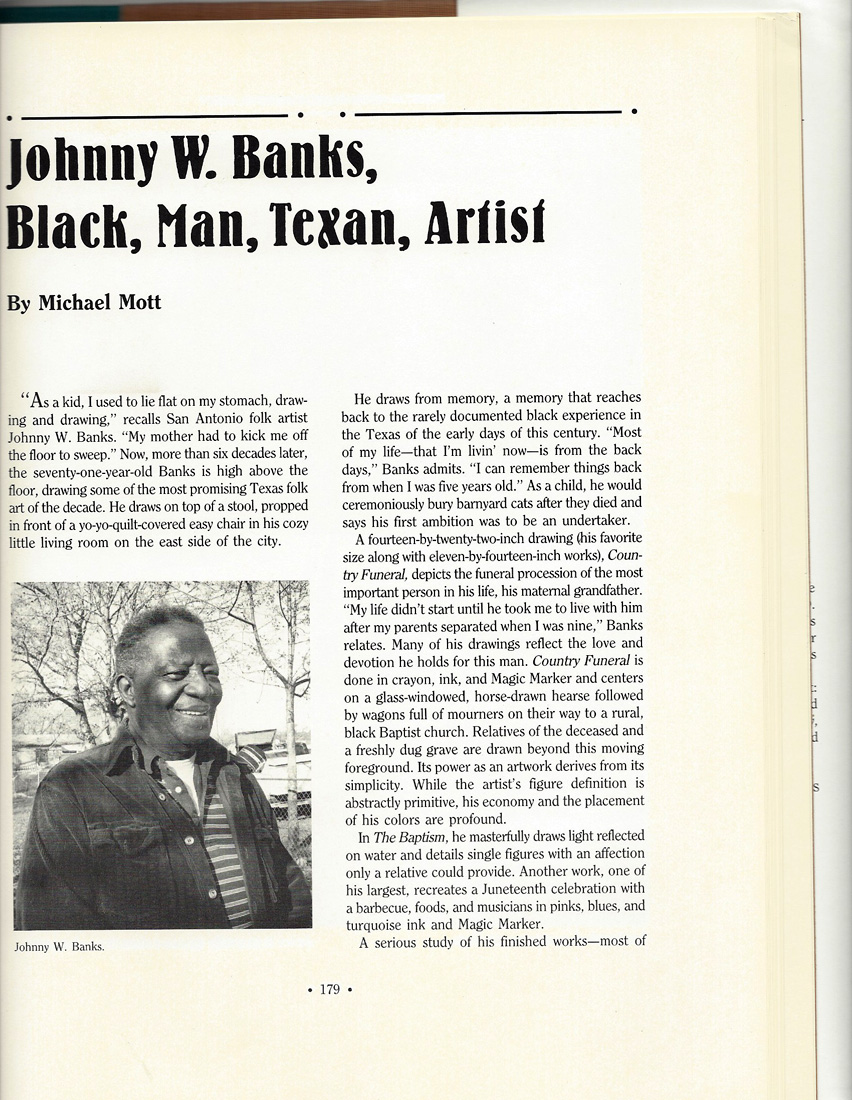 The book "FOLK ART IN TEXAS" has an extensive article (with several color and black and white plates) written about Johnny Banks.